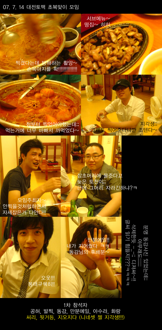 화랑엉아는 안본사이에 초췌해졌고,, 아수라님은 안본사이에 살이 더 빠지셨고, 토천이는 안본사람인데 좀 배렸고-_- 공허는 안본사이에 늙었고ㅋ 발찍이는 안본사이에 좀 볼라했떠니,, 지 사진만 안올리네..=,.=;