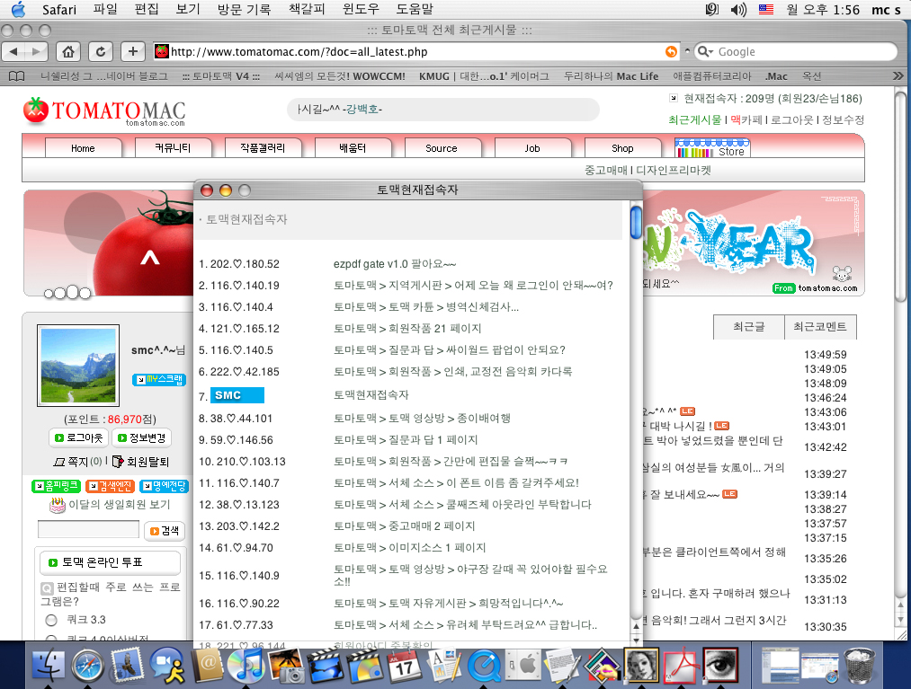 개인적으로 토맥접속자늘어나는것과 제 컴퓨터 데스크탑이 희망적입니다소망적입니다emoticon_001