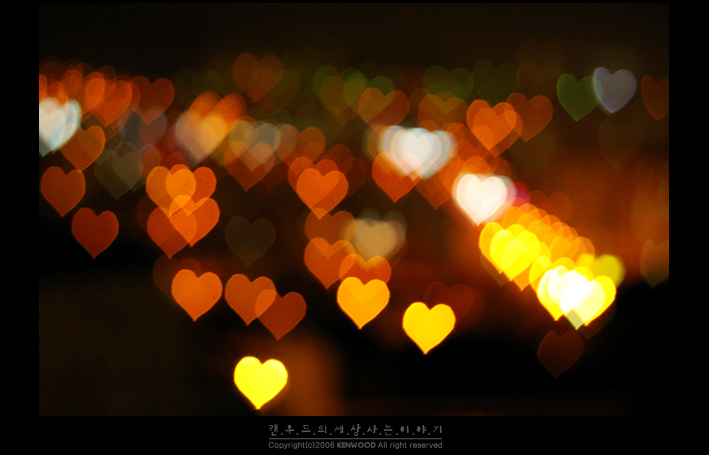 아.. 일케 찍는거 티비서 본거 같은디... 카메라 렌즈에다가 원하는 모양 맹글어서 씌워가꼬 찍던가 ;;; 암튼.. 멋지심돠.. ㅋ