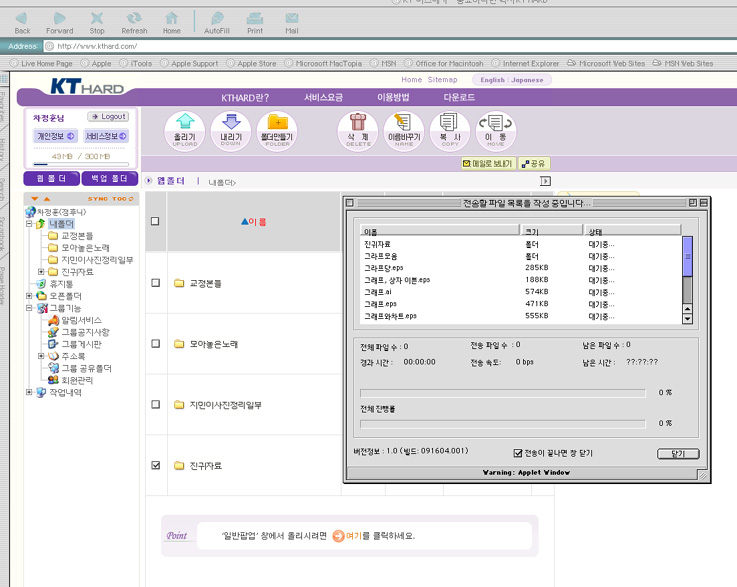 글고 웹브라우져에서 폴더째 통째로 올리고 내리고 다 합니다...
