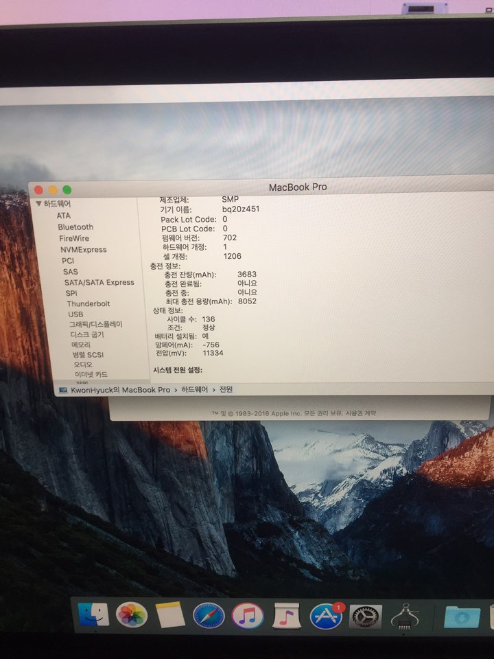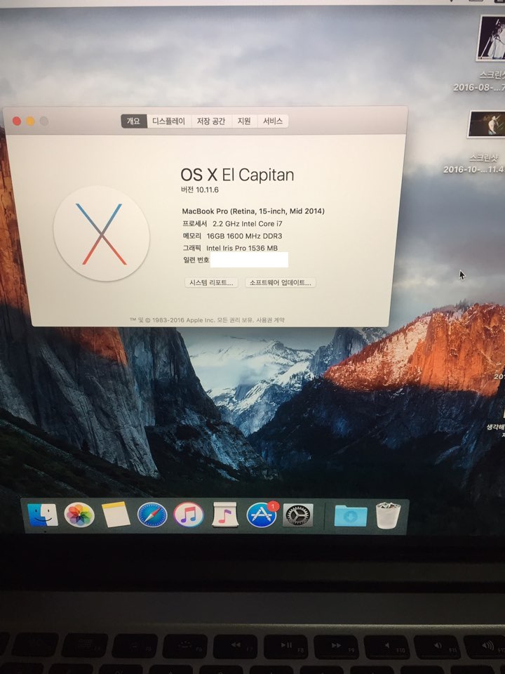 제품사양: CPU:  2.2Ghz    RAM: 16GB        하드용량: 256GB