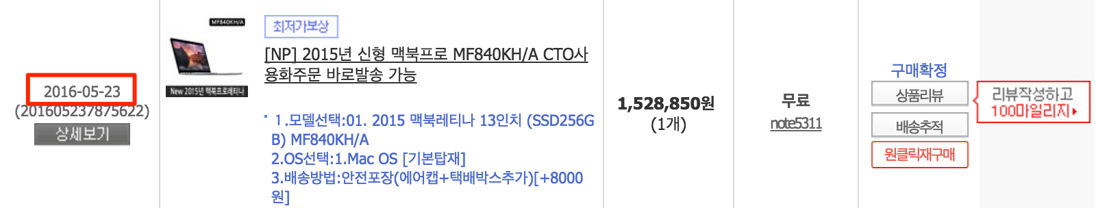 2015 맥북프로(MF840KH/A_레티나_13.3인치_256/8G_5개월사용)