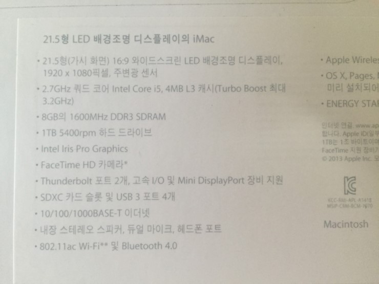 아이맥 21.5인치 2013 late (애플케어 17년 5월까지) 직거래나 택배