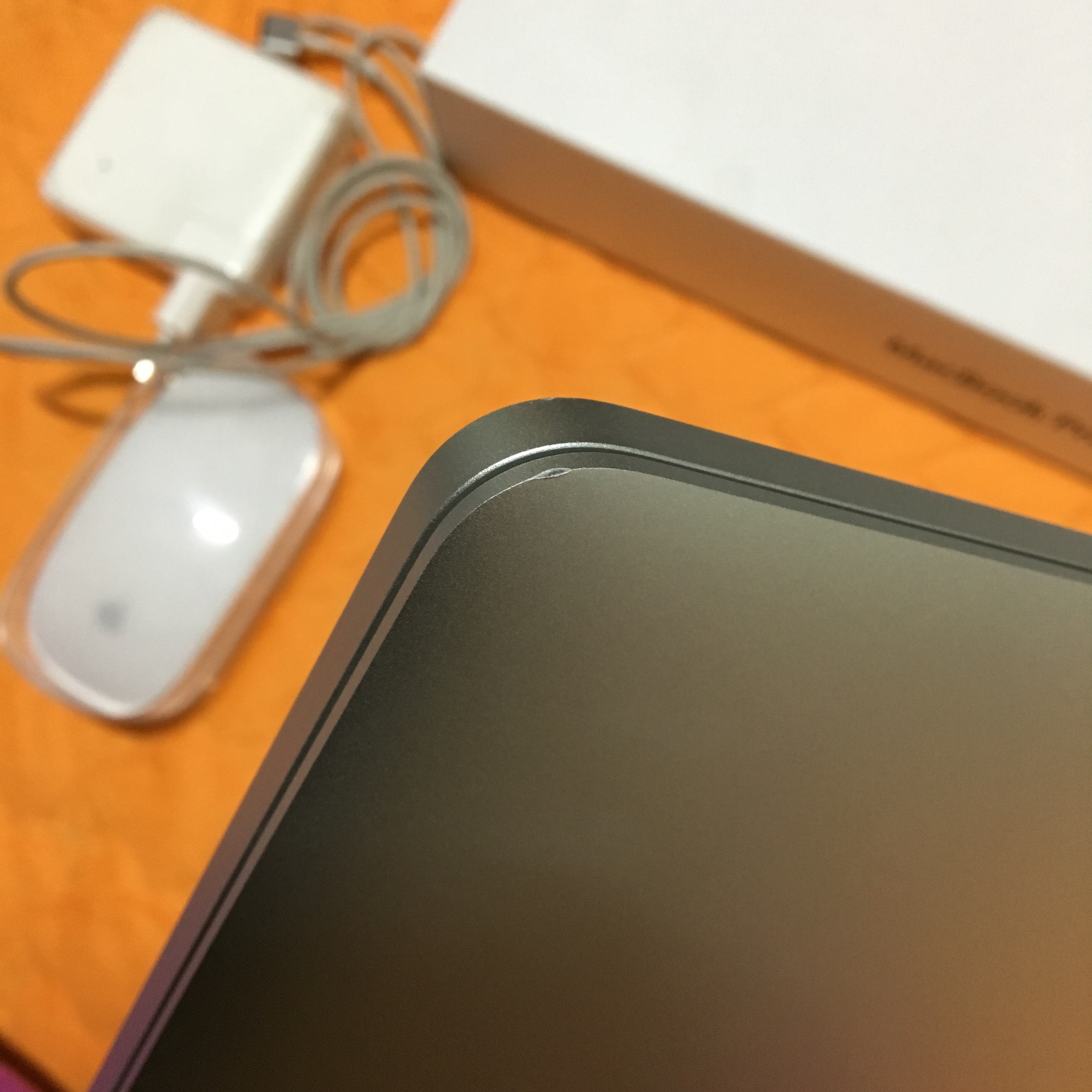 왼쪽 아래 모서리에 정말 정말 작은 찍힘이 딱 하나 있습니다. (하단 첨부사진 참고 부탁드립니다.)