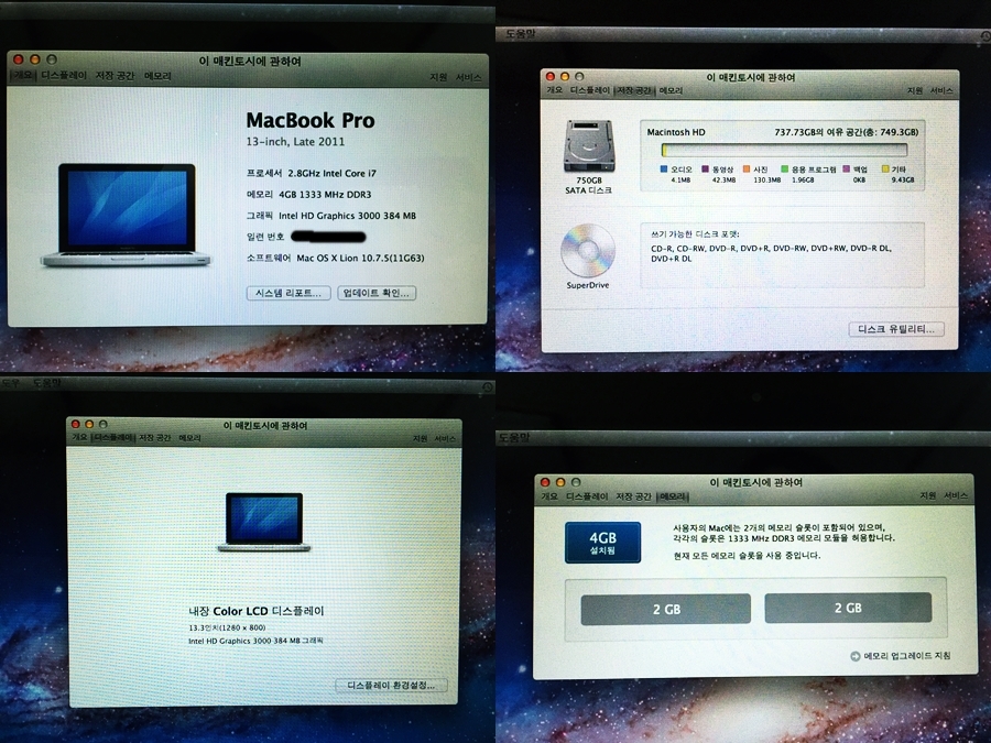 2012년 4월에 선물로 받은 <맥북프로 13인치 Late 2011 고급형 MD314LL/A>입니다.