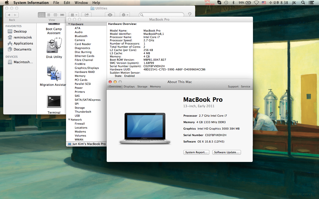맥북프로 팝니다. core i7 2.7 ghz 2011년 4gig ram. 500 hdd.