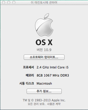 CPU : 2.4GHz Intel Core i5