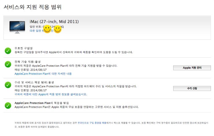 애플케어기간 남아있습니다. (2014년 8월17일)