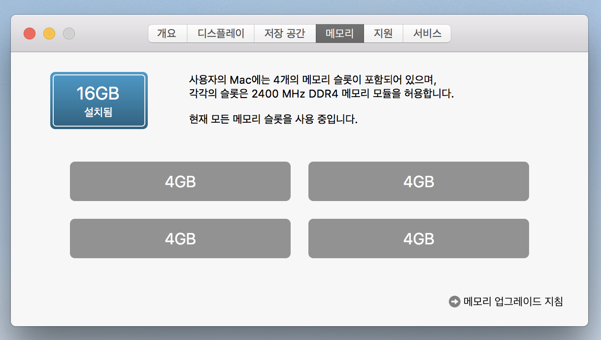 4gb 메모리 4개 장착하여 16g이고  250ssd 장착되어 있습니다.