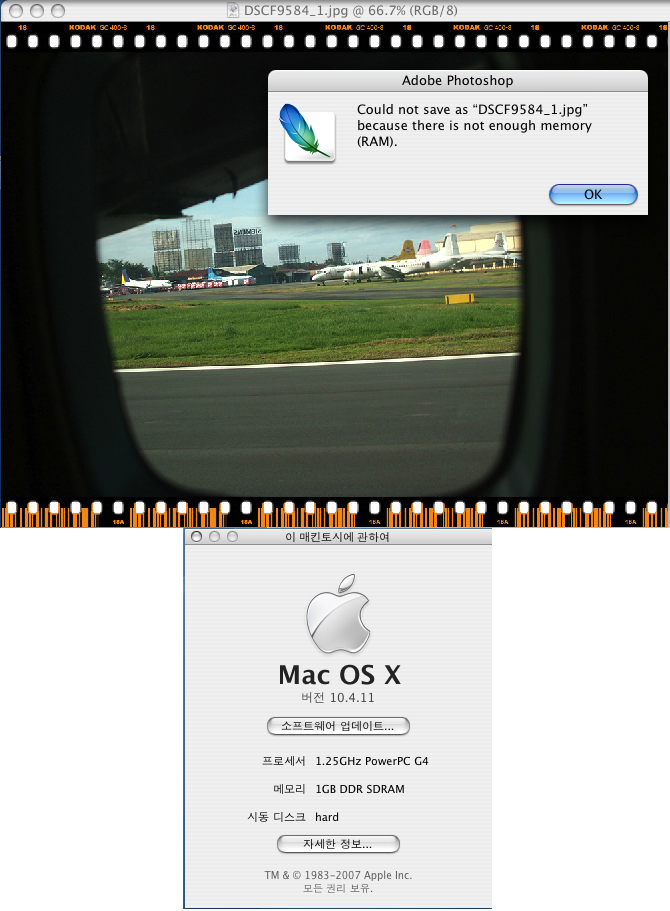 그리고 10.4.11에서 포토샵으로 저장을 하려는데 메모리가 부족하다는건