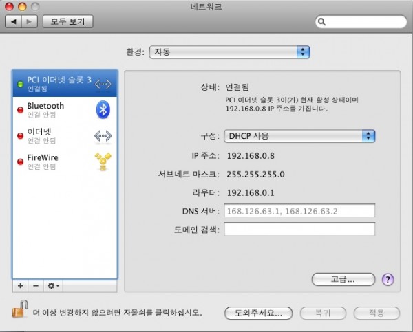 제방의 파워맥은 ip주소까지 할당 받고 연결까지 활성입니다만