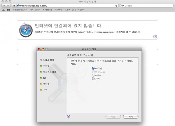 사파리가 실행이 안되네요. 창은 뜹니다만 연결이 되지 않습니다.
