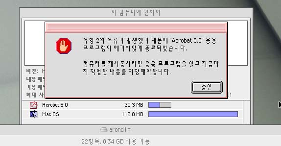 음 유형2의 오류가 보통 메모리 부족 오류아닌가요? 9대 OS를 쓴지가 오래되서 기억이 가물가물 ㅎㅎ 아크로벳 실행화일에 정보보기 하셔서 메모리를 늘려보시고 해보세용