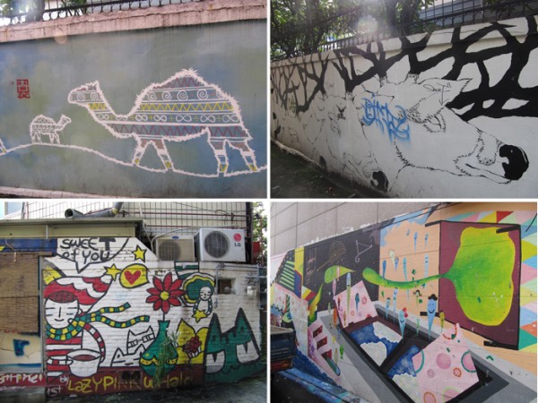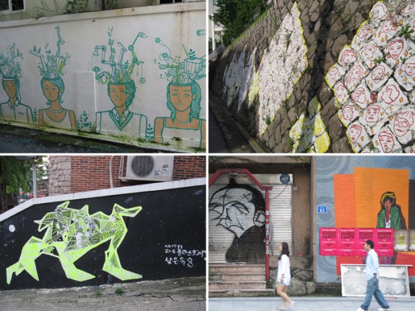 상업적인 그림부터 홍대 미술과 학생들의 거리미술전.. 그리고 그래피티, 온갖 낙서들.