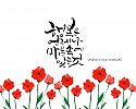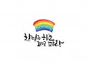 "손에 손잡고 하나되어 가는 세상" 슬로건 캘리그라피