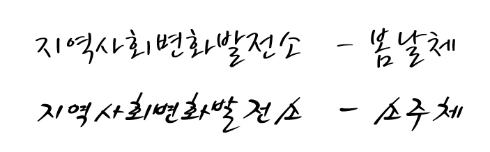 소주체 또는 봄날 서체 부탁드립니다 김은주 일반 0 3705 2009.04.07 10:49 -0001.11.30 00:00 아웃라인.ai (0byte) + 36 > > 소주체와 봄날 서체 부탁드립니다. > 매번 급하게 부탁드리네요~ > > 문구-<지역사회변화발전소> > > 감사합니다 >
