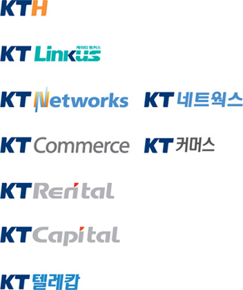 KTH, KT Linkus, KT Networks, KT Commerce, KT Rental, KT Capital, KT 텔레캅